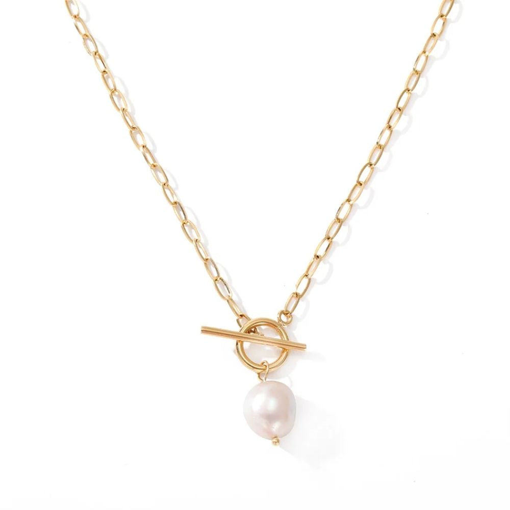 Descubre la sofisticación de nuestro collar Lazo de Perla. Esta joya refinada combina acero inoxidable chapado en oro con una perla de agua dulce, creando un equilibrio perfecto entre elegancia y modernidad. Su diseño único y cierre en forma de lazo aportan un toque de originalidad a cualquier atuendo, ideal tanto para ocasiones especiales como para el uso diario. El collar "Lazo de Perla" es un complemento imprescindible para quienes buscan añadir un toque de distinción a su estilo.